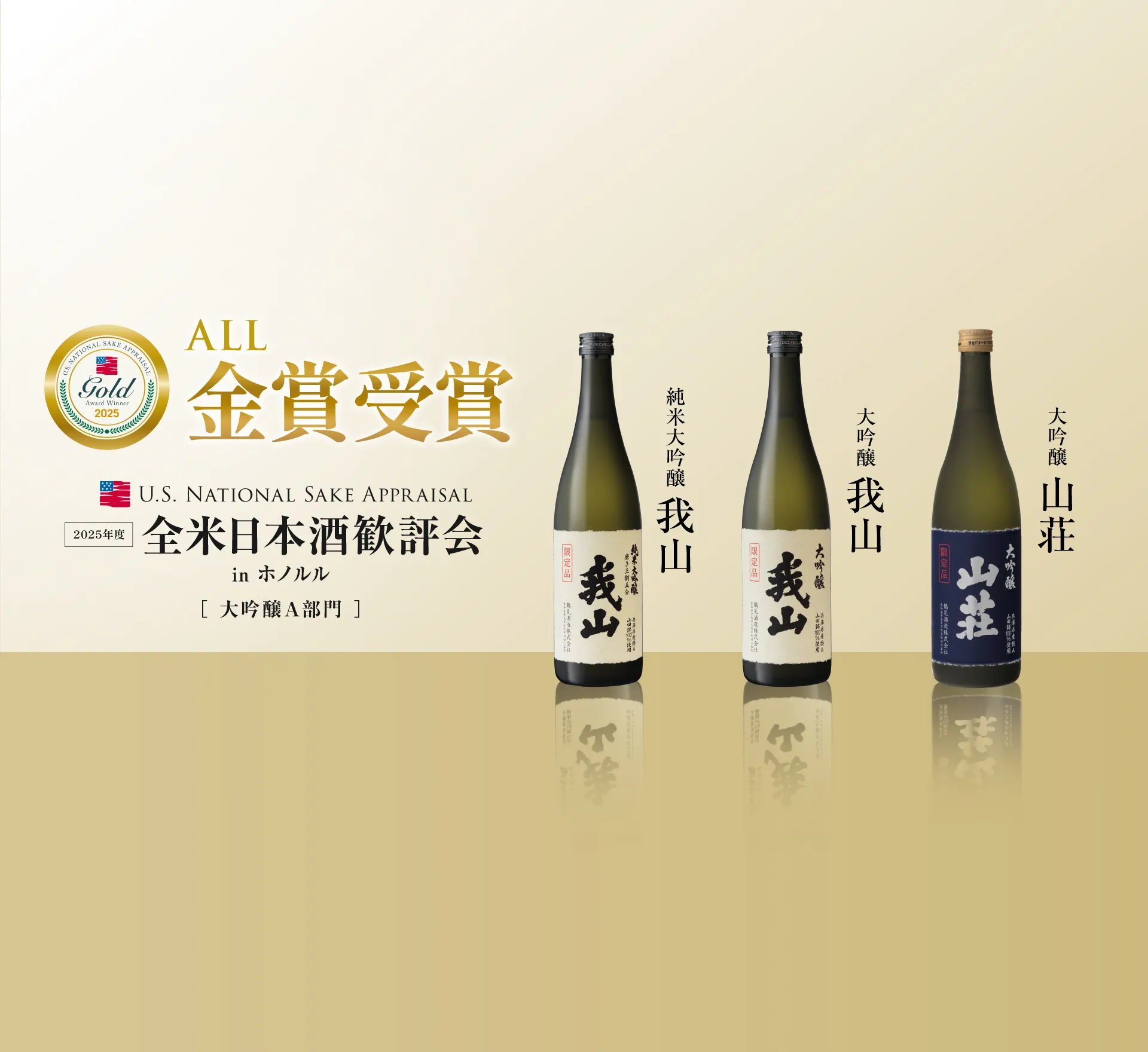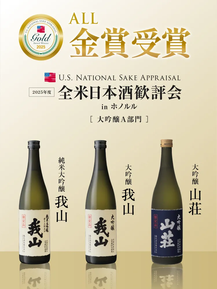 米国ハワイ州で開催された「2025年度 全米日本酒歓評会」大吟醸A部門において、【純米大吟醸 我山】【大吟醸 我山】【大吟醸 山荘】が金賞を受賞